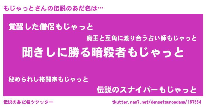 | ヒーロー風カッコイイあだ名 | 『仮面モジダー』『最強戦士モジャット』 |
