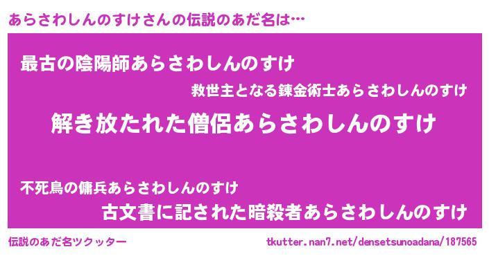 | 意味不明あだ名 | 『とにかく怪しいあらさわしんのすけ』 |