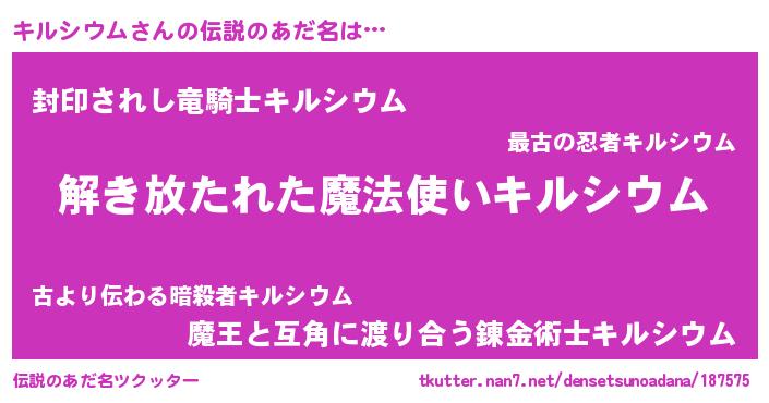 | 胡散臭い通販商品みたいなあだ名 | 『伝統あるサプリメント…その名も「キルシウム」』 |