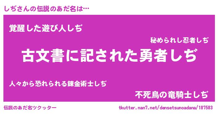 | ヘコむあだ名 | 『しぢ(遠い目)』『しぢぷりん』 |
