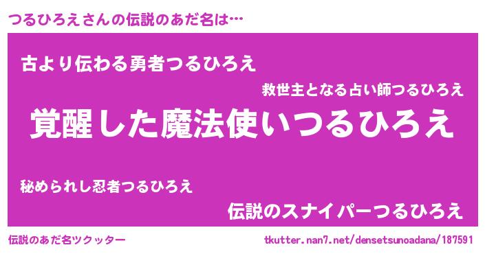 | ヒーロー風カッコイイあだ名 | 『炎刃騎士ツル』『ネオツルヒロエ』 |
