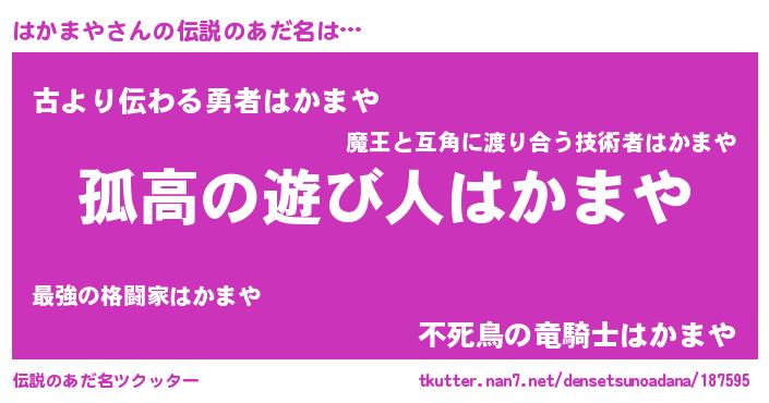 | ヒーロー風カッコイイあだ名 | 『仮面ハカダー』『幻影騎士ハカ』 |