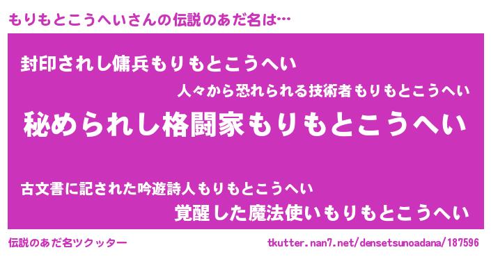 | ファンタジー風あだ名 | 『エターナルモリモトコウヘイー』 |