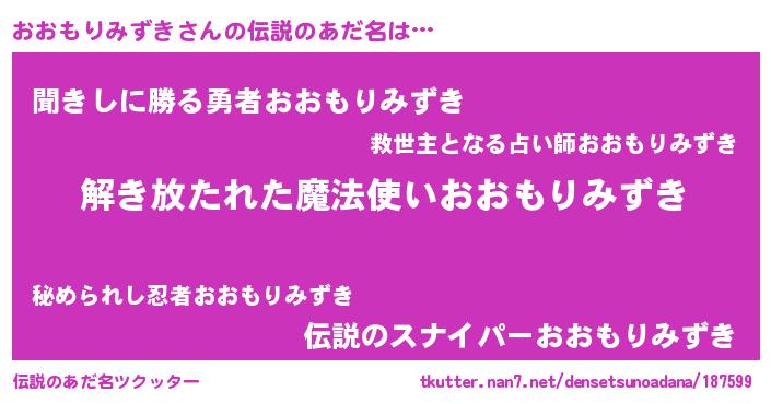 | ヒーロー風カッコイイあだ名 | 『幻影騎士オオ』『ネオオオモリミズキ』 |