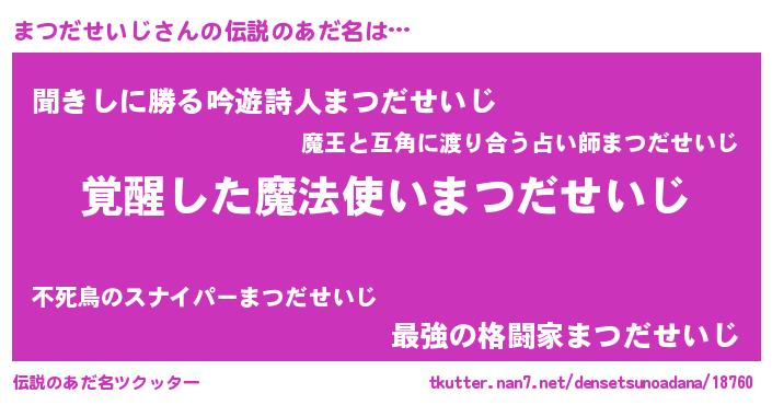 | ポケモン風あだ名 | 『ヒマツダセイジ』『ゼニマツ』 |