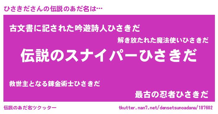 | 胡散臭い通販商品みたいなあだ名 | 『必ず成功する霊験あらたかなお札…その名も「ひさきだ」』 |