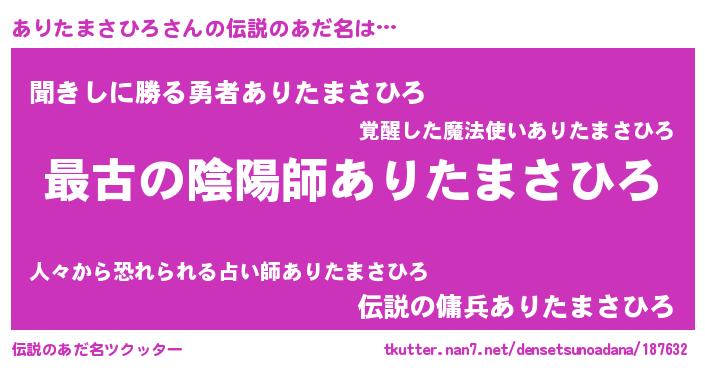 | ファンタジー風あだ名 | 『エターナルアリタマサヒロー』 |