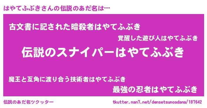 | ヒーロー風カッコイイあだ名 | 『スーパーハヤテフブキ』『幻影騎士ハヤ』 |