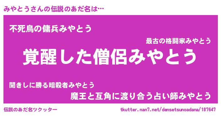 | ポケモン風あだ名 | 『ミヤキング』『ヒミヤトウ』 |