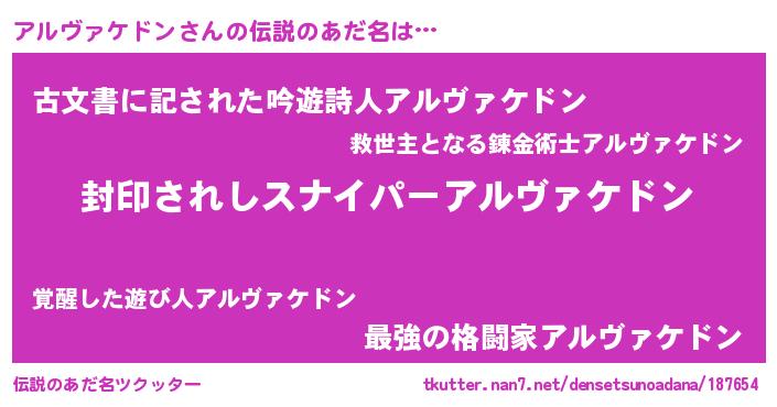 | 男性向けラノベタイトル風あだ名 | 『アルヴァケドンアートオンライン』 |