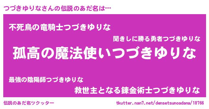 | ポケモン風あだ名 | 『ツヅセウス』『ヒツヅキユリナ』 |
