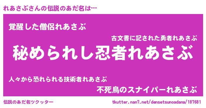 | ヒーロー風カッコイイあだ名 | 『仮面レアダー』『ウルトラれあさぶマン』 |