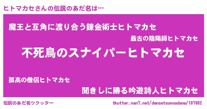 | ヒーロー風カッコイイあだ名 | 『スーパーヒトマカセ』『仮面ヒトダー』 |