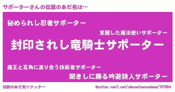 | 肩書あだ名 | 『サポーターCEO』『サポーター少尉』 |
