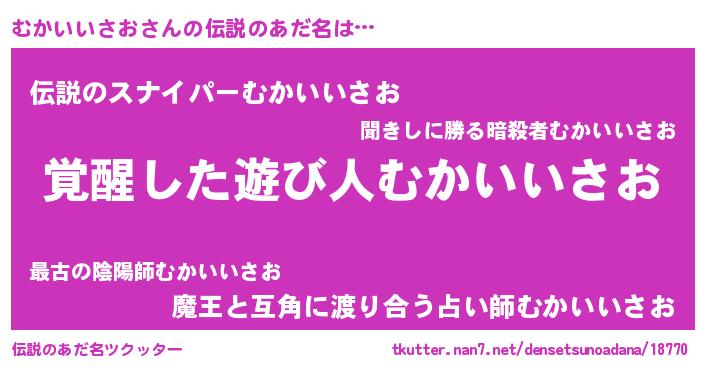 | 意味不明あだ名 | 『自称むかいいさお』 |
