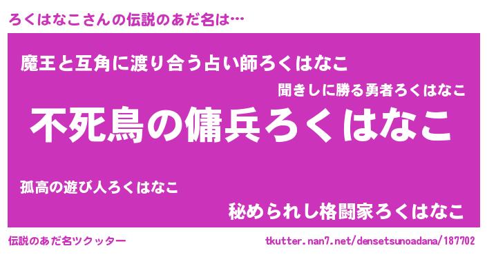 | 女子向けラノベタイトル風あだ名 | 『ろくはなこ姫と円卓の騎士』 |