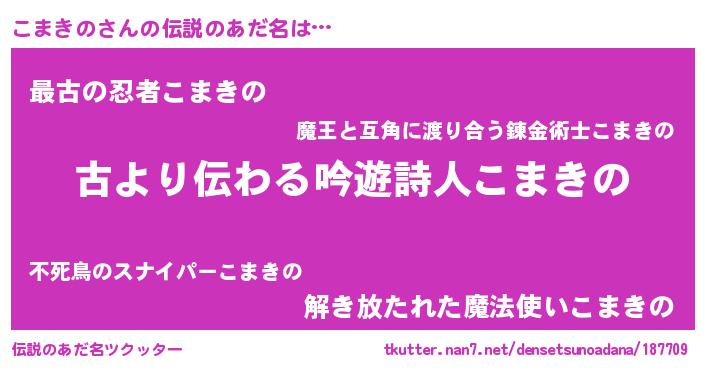 | 意味不明あだ名 | 『永久保存こまきの』『自称こまきの』 |