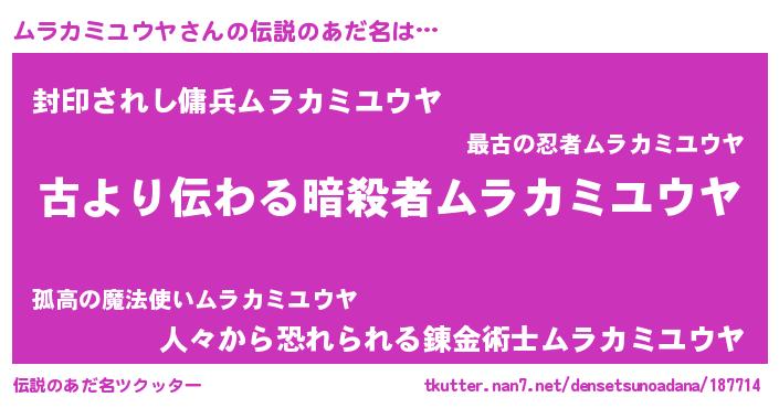 | 意味不明あだ名 | 『永久保存ムラカミユウヤ』 |
