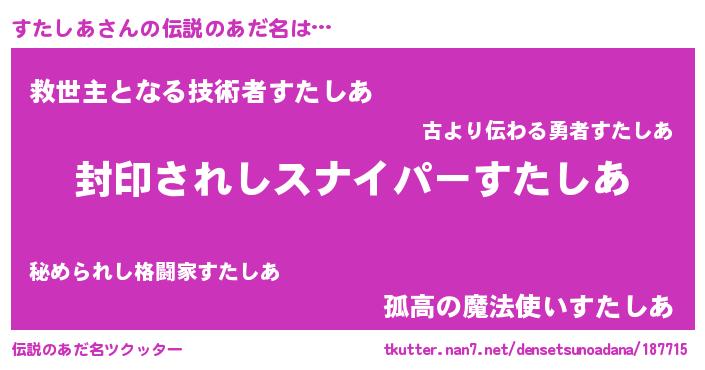 | ヒーロー風カッコイイあだ名 | 『スーパースタシア』『暗黒騎士スタ』 |