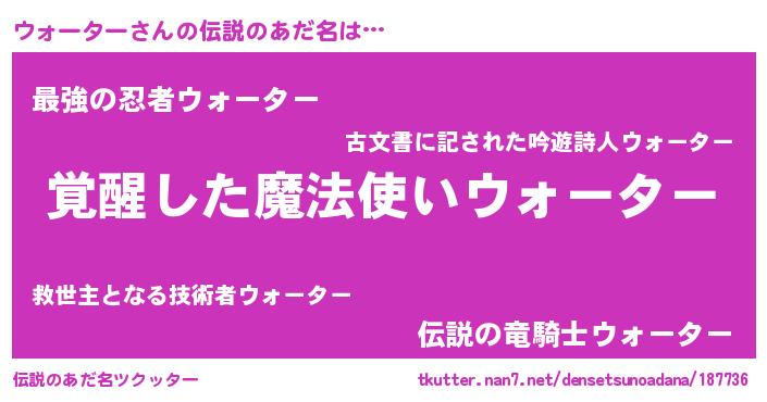 | ヒーロー風カッコイイあだ名 | 『最強戦士ウォーター』『幻影騎士ウォ』 |