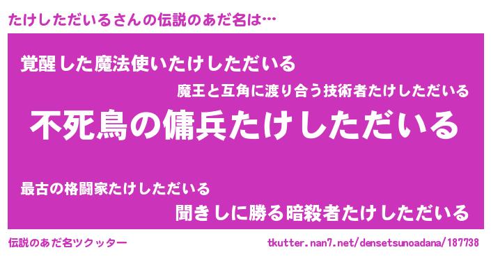 | 意味不明あだ名 | 『住所不定無職たけしただいる(47歳)』 |