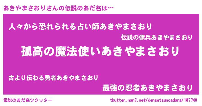 | 意味不明あだ名 | 『とにかく怪しいあきやまさおり』 |
