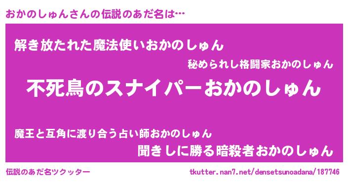 | 胡散臭い通販商品みたいなあだ名 | 『モテモテ間違いなし霊験あらたかなお札…その名も「おかのしゅん」』 |