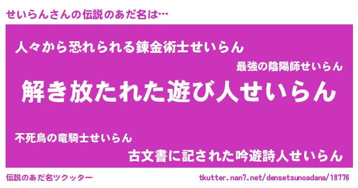 | ヒーロー風カッコイイあだ名 | 『魔戒騎士セイ』『愛の使者せいらん』 |