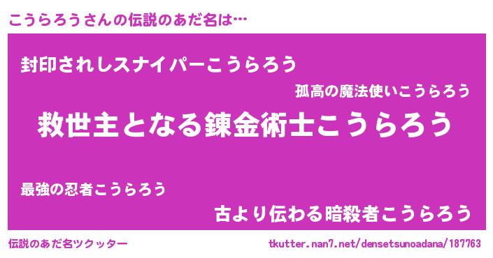 | ヒーロー風カッコイイあだ名 | 『天空の使者こうらろう』『幻影騎士コウ』 |