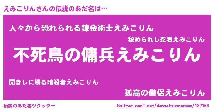| ヒーロー風カッコイイあだ名 | 『スーパーエミコリン』『暗黒騎士エミ』 |