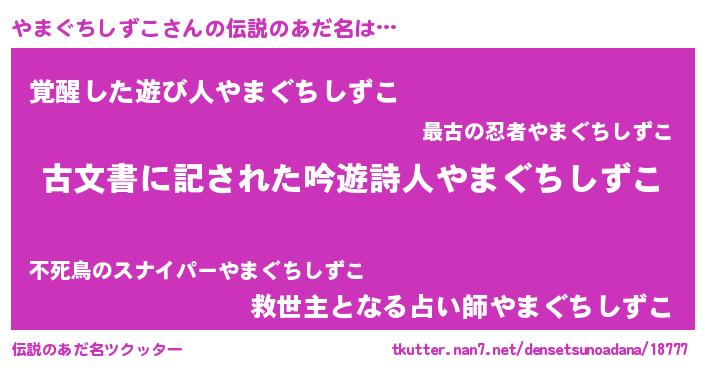 | ヘコむあだ名 | 『やまぐちしずこ(笑)』『やまぷりん』 |