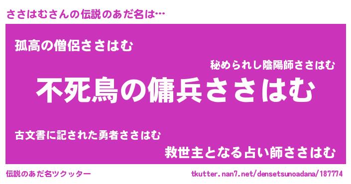 | ヒーロー風カッコイイあだ名 | 『スーパーササハム』『魔戒騎士ササ』 |