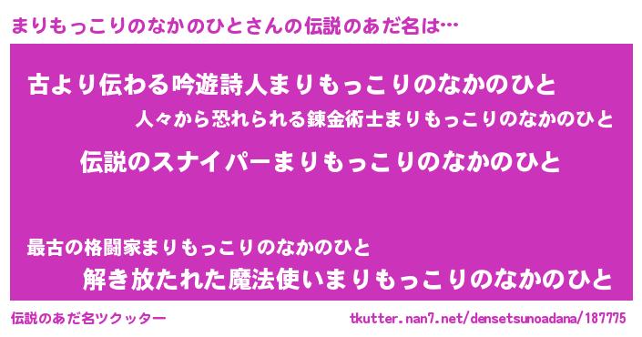 | 恥ずかしいあだ名 | 『プリティーまりもっこりのなかのひと』 |