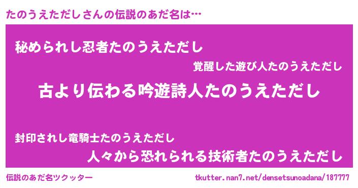 | 意味不明あだ名 | 『永久保存たのうえただし』 |
