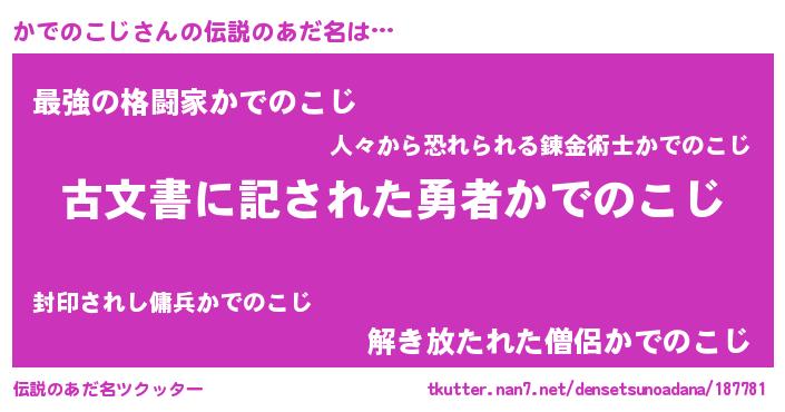 | ヘコむあだ名 | 『かでのこじ(苦笑)』『酢こんぶ』 |