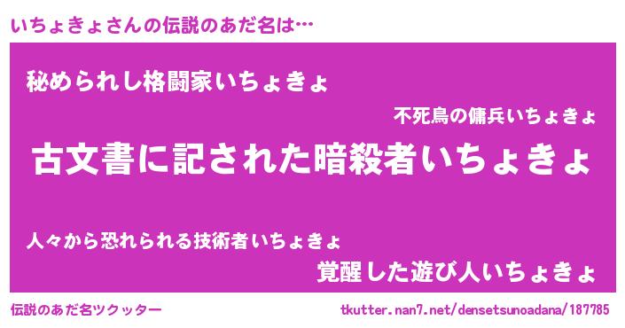 | 料理風あだ名 | 『ヘルシー!いちょきょのピリ辛酒蒸し!』 |