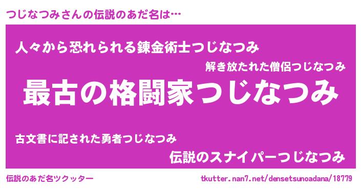 | ファンタジー風あだ名 | 『エターナルツジナツミー』『ゼツジトゥ』 |
