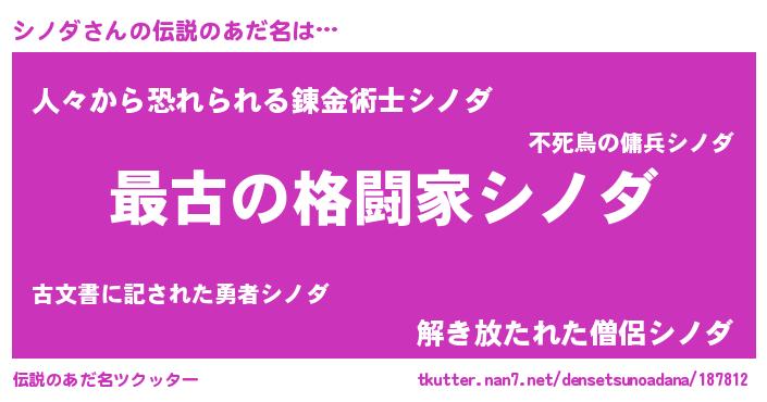 | ヒーロー風カッコイイあだ名 | 『ウルトラシノダマン』『黄金騎士シノ』 |