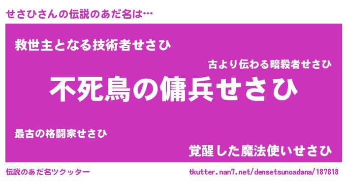 | 女子向けラノベタイトル風あだ名 | 『せさひ姫と円卓の騎士』 |