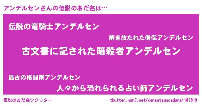 | 胡散臭い通販商品みたいなあだ名 | 『前代未聞の健康食品…その名も「アンデルセン」』 |