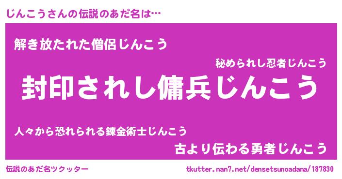 | ヒーロー風カッコイイあだ名 | 『スーパージンコウ』『銀牙騎士ジン』 |