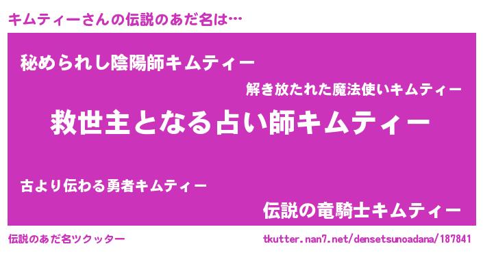 | ヒーロー風カッコイイあだ名 | 『天空の使者キムティー』『仮面キムダー』 |
