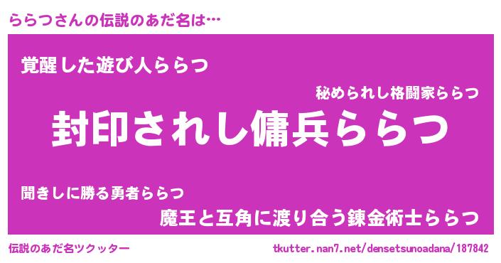 | ヒーロー風カッコイイあだ名 | 『スーパーララツ』『究極戦士ララツ』 |
