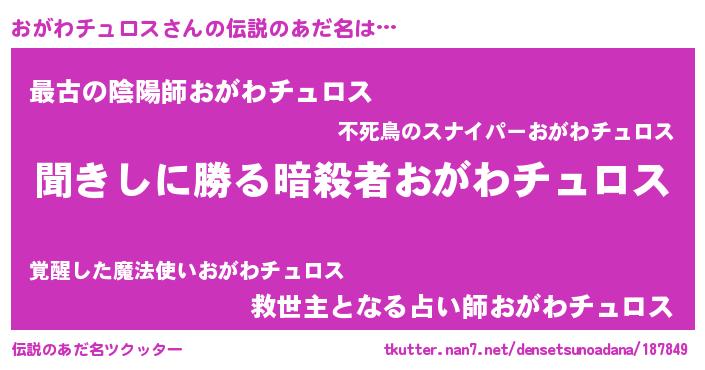 | ヒーロー風カッコイイあだ名 | 『ネオオガワチュロス』『天弓騎士オガ』 |