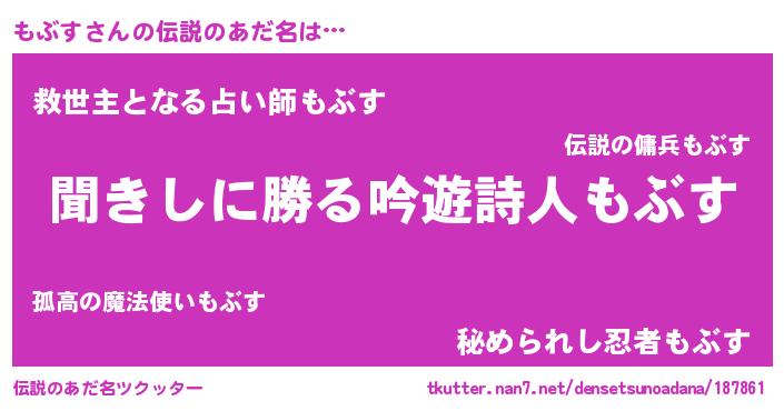 | ヒーロー風カッコイイあだ名 | 『ネオモブス』『慈愛の使者もぶす』 |