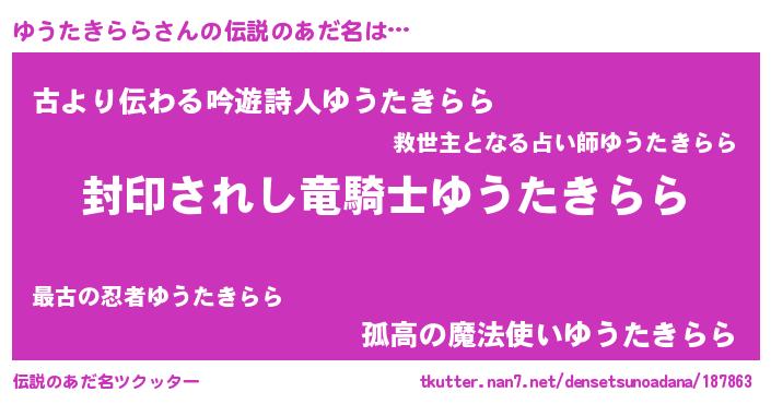 | 胡散臭い通販商品みたいなあだ名 | 『億万長者になれるブレスレット…その名も「ゆうたきらら」』 |