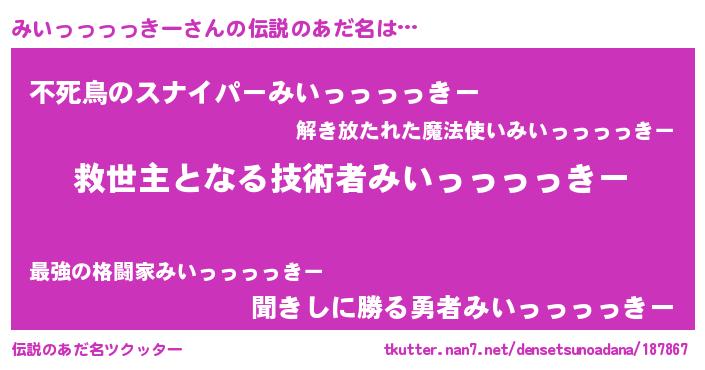 | ヘコむあだ名 | 『みいふぇ~』『みいっっっっきー(遠い目)』 |