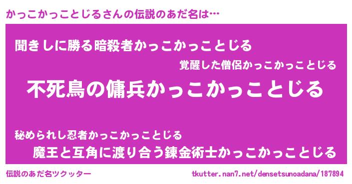 男性向けラノベタイトル風あだ名 | 『転生したらかっこかっことじるだった件』 |