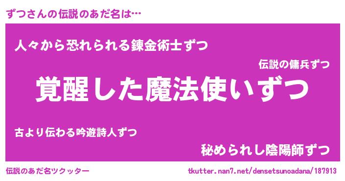 | 男性向けラノベタイトル風あだ名 | 『この素晴らしい世界にずつを!』 |