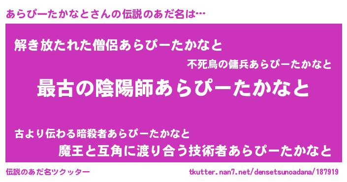 | ファンタジー風あだ名 | 『エターナルアラピータカナトー』 |